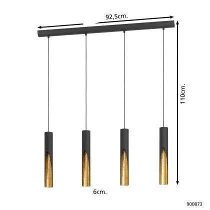 Eglo Pendant Barbotto Steel Black, Gold 18W 1380lm - 830 Warm White | Suitable for GU10