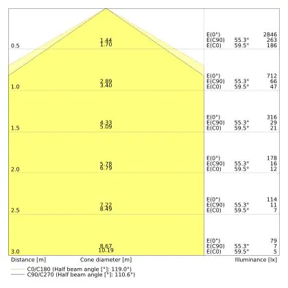 The colour code is a combination of colour rendering (CRI) and light colour (Kelvin). The first number indicates the colour rendering (1 = very poor colour rendering, 9 = maximum colour fastness). The second and third number contains the light colour. Example: the colour code 830 consists of good colour rendering (8) and warm white light (3000K). |