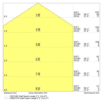 The colour code is a combination of colour rendering (CRI) and light colour (Kelvin). The first number indicates the colour rendering (1 = very poor colour rendering, 9 = maximum colour fastness). The second and third number contains the light colour. Example: the colour code 830 consists of good colour rendering (8) and warm white light (3000K). |