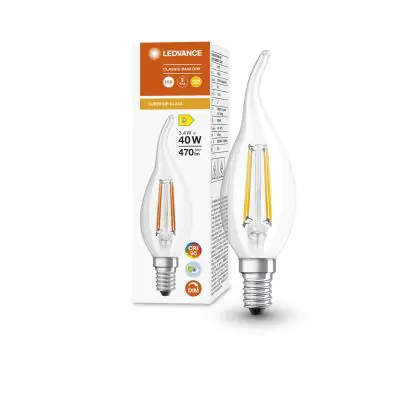 Ledvance Superior Classic LED E14 Filament Twisted Candle Clear 3.4W 470lm - 927 Extra Warm White | Dimmable - Best Colour Rendering