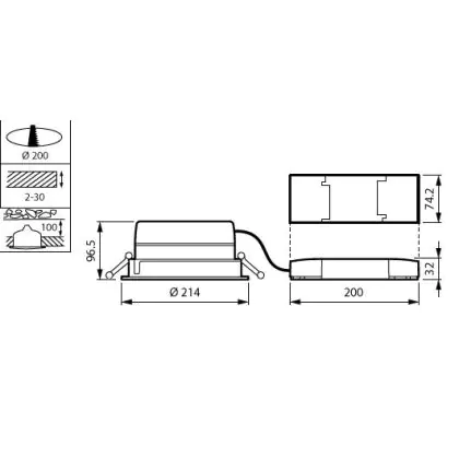 Philips LED Downlight LuxSpace Compact Low Height DN570B VLC-E 19.8W 2200lm 80D - 830 Warm White | 214mm - Aluminium Reflector - Dali Dimmable - Emergency 3H
