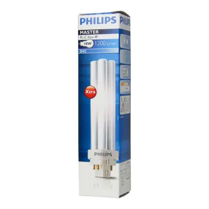 Philips PL-C 4P are compact fluorescent lamps with separate power supplies, without a starter or capacitor. This model is very energy efficient and is equipped with a 4 pin socket. Philips PL-C Xtra 18W 840 4P have a G24q-2 socket type and measure 114 cm.