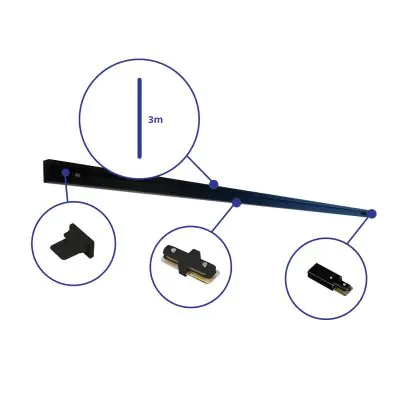 Rail Set 1-Phase 3 Meter Black | incl. End Cap, Power Connector and L-Connector